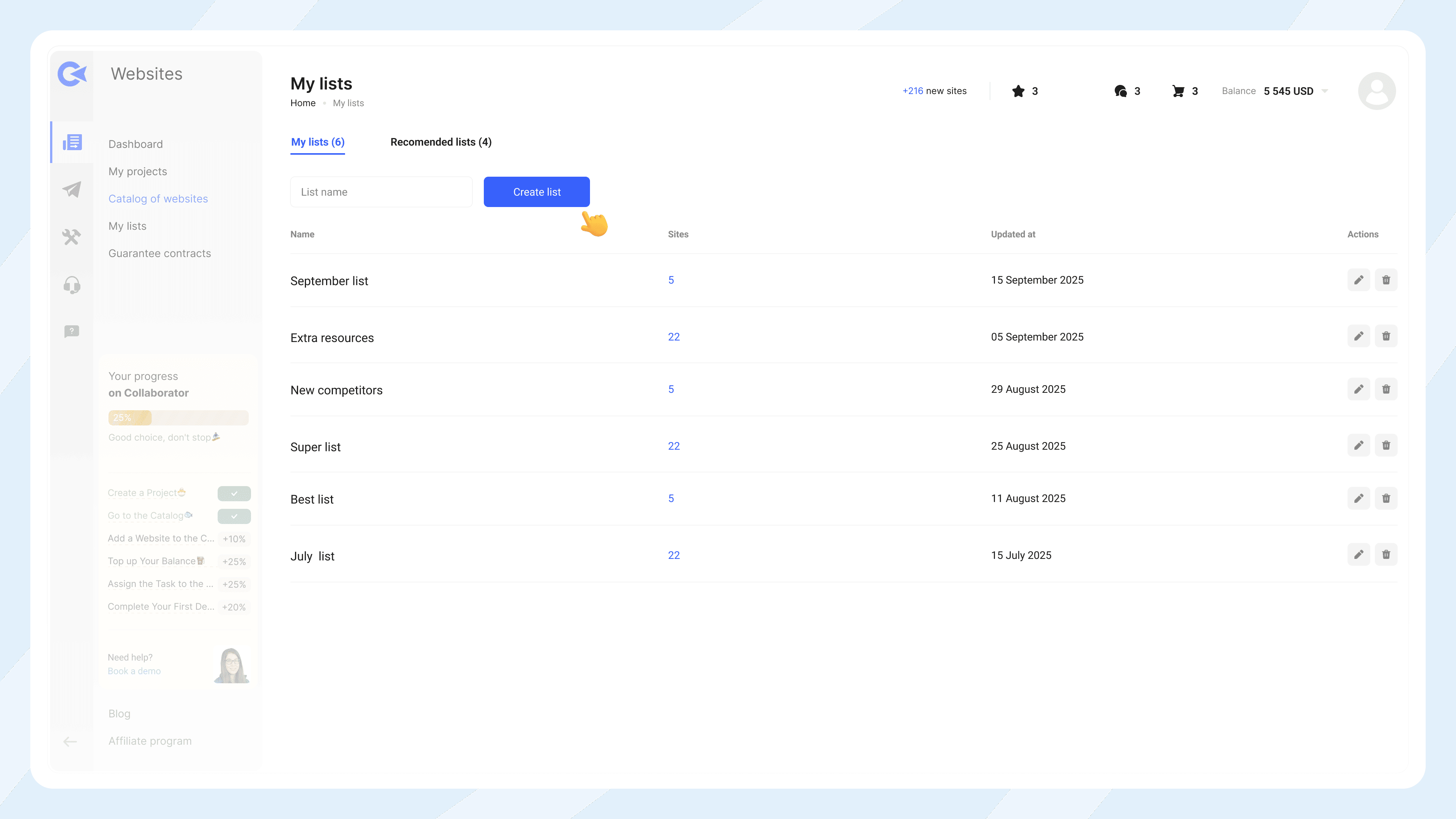Collaborator est une marketplace de distribution PR qui connecte les marketeurs, experts SEO et professionnels des relations publiques avec des sites web à forte autorité et des chaînes Telegram.